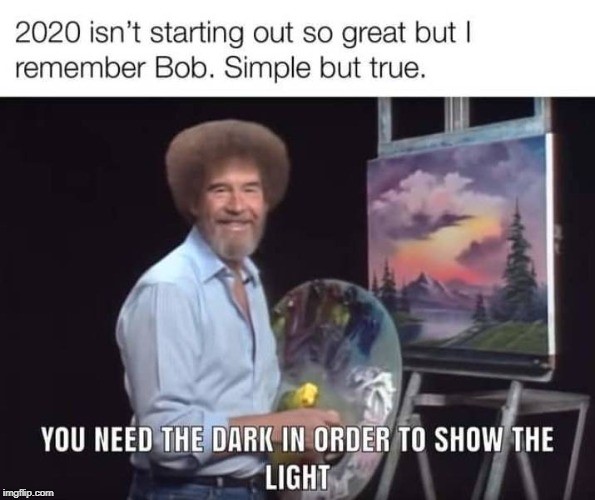 Now, let’s liten (another attempt at a glass pun) the mood to relieve some stress. There’s a famous quote for any situation; one that comes to mind currently is needing darkness in order to have light. Google tells me it was Mark Frost who said this, I prefer the Bob Ross meme.