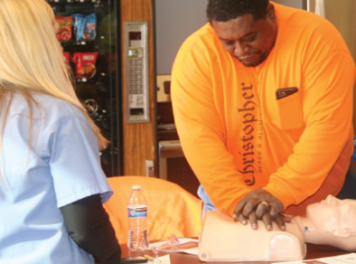 The comprehensive training provided to employees included step-by-step instruction in activating emergency medical services, or EMS; hands-only CPR; how to identify life-threatening bleeding; compression with the application of direct pressure on the wound; use of a tourniquet and wound packing. Each participant was able to practice these lifesaving techniques on mannequins and wound-care training appendage apparatus.