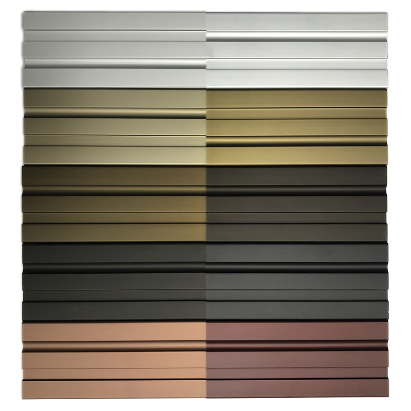 Champagne, light bronze and medium bronze anodize have been industry standard anodize colors for decades. These are especially popular when paired with brick, concrete and other masonry, such as with historic renovation projects, low-rise office buildings, school and medical facilities.